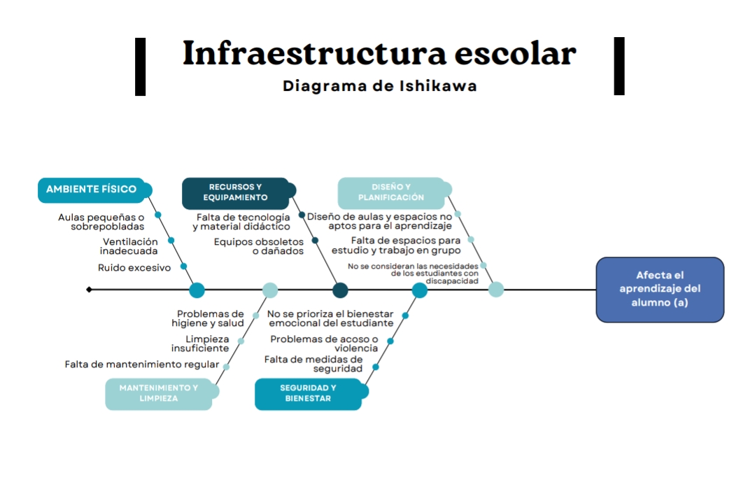 Un diagrama de Ishikawa, también conocido como diagrama de espina de pescado o diagrama de causa-efecto, es una herramienta visual utilizada para identificar y analizar las posibles causas de un problema específico. Su estructura se asemeja a un esqueleto de pescado, donde el problema se coloca en la cabeza y las causas se ramifican como espinas.